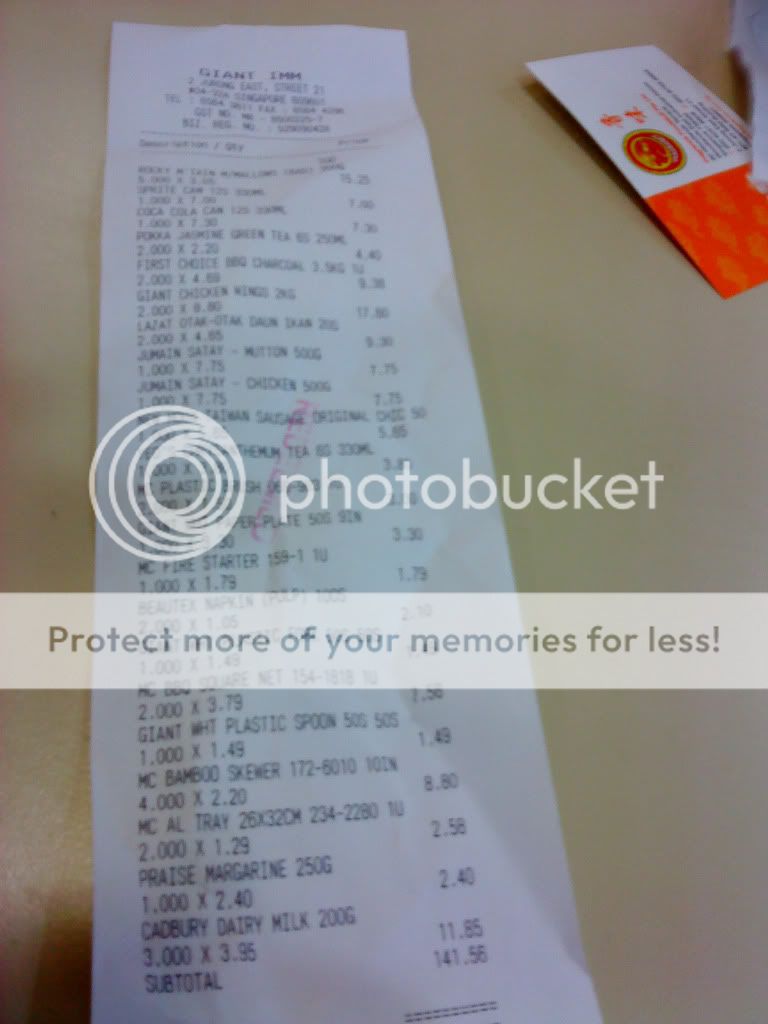 Woke up at 6.50am. Woah, so early. It was to write the note la. LOL. Ok so I finished it, transferred songs to my phone, bathed, went out. Bused to IMM. Bloody hot while waiting for the bus. Reached IMM, Eng Chow was already there, he reached there at 9.30 like bloody wtf. Oh and Jay was also there already. Ok waited for Rae and went in Giant to buy the stuff. Kons was late. By 10 mins. Lolz. And the boys were like effin' retarded. They keep on changing trolleys cause' the trolleys cannot turn properly. They were like LOL! XD Okok so bought things. And we keep talking alot of nonsense and fooling around in Giant. Like, LOL! XD Shopping list was really looooooooooooooong. Spent $141.56. Hm.